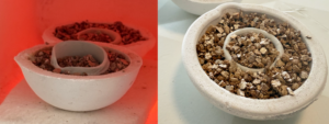 - Het afbakken van onderdelen van zilverklei. Bakje vullen met vermiculiet korrels Op deze manier heeft het af te bakken sieraad voldoende ondersteuning in de oven